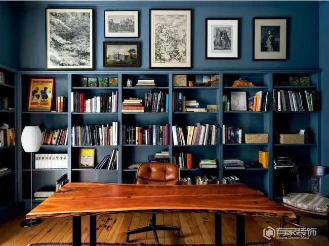 因而,书房收纳的正确打开方式,应该是定制书柜。如果条件合适的话,书柜、书桌和榻榻米采用一体化定制设计。假如书房定制柜子的区域是非承重墙,还可以打造嵌入式设计,使得整体空间感更完美。书房天花板,建议简单为主。不可否认,吊顶的存在,可以极大提升书房的颜值。只不过,先天存在层高不足的书房,安装厚重吊顶,只会进一步拉低书房层高,让书房有压抑感。因而,书房天花板建议采用石膏线或者环保乳胶漆装饰,颜值也是长期在线。书房灯饰不宜多,建议两盏或者三盏。同时,书房多用小巧家具,都有利于增加通透度。