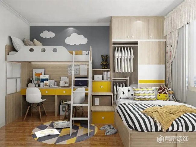 在常人眼里,儿童房=卧室。对于孩子来说,儿童房就是属于自己的小王国。随着年龄的变化,他们对空间的需求也会不同。这个时候,儿童房布局就显得尤为重要。儿童房布局怎么设计才好?按需规划是重点。在这里要特别强调一点,不要一次性就将儿童房所有家具配齐,这样子很不合理。一次性配齐所有家具,可能会出现儿童房环保超标、小孩子被尖锐家具棱角磕伤和活动空间严重不足等弊端。因而,有条件的家庭,建议分段式布置儿童房,不仅仅是合理设计需求,也是出于节省预算考虑。同时,儿童房布局,我们要站在孩子角度去考虑。