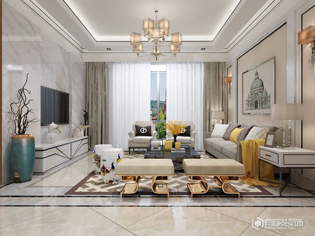 客厅,不建议通铺木地板。不可否认,较之普通瓷砖,木地板更能提升居家格调。然而,木地板的价格却大大高于瓷砖。时间长了,木地板表面还容易出现划痕,尤其是家有宠物。日常保养,也要花费不菲的预算。再者,木地板质量参差不齐。选到质量不好的木地板,会有环保超标等问题。总体来说,瓷砖更适合走动频繁的客厅。实在对木地板有特殊情结,可以试试局部铺贴木地板。关于客厅装修误区,不装回型吊顶、射灯设计等也是重点。前者是容易出现压抑感、卫生死角,同时造价又高。后者就更不实用了,开启频率低,纯粹的装饰品。