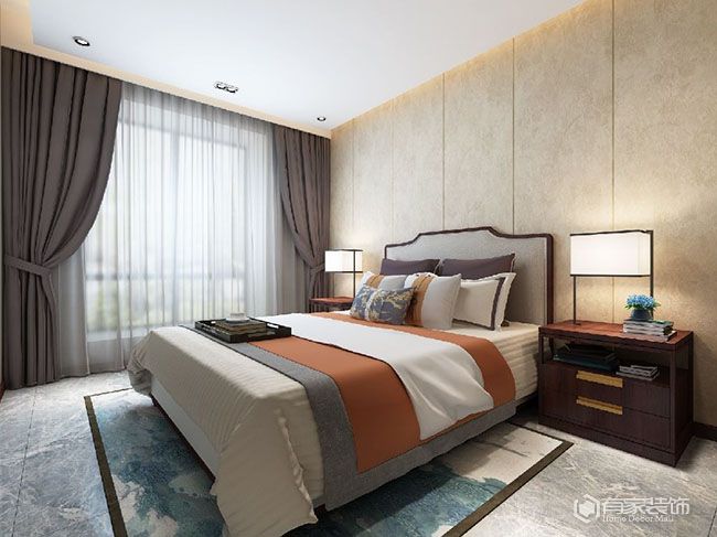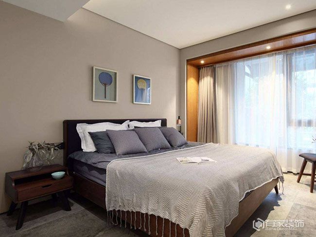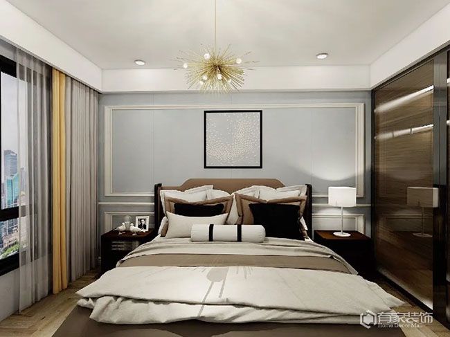 对于老人房来说,窗帘既要有保护隐私功能,也可以发挥隔音、遮光等作用。因而,老人房窗帘的遮光度,建议根据老人的实际需求,选择合适遮光度的遮光窗帘。考虑到老人房也需要有足够的采光,建议窗帘采用双层设计,即纱窗+遮光窗帘。在遮光窗帘的材质选择方面,透气性好的棉麻窗帘,搭配遮光性好的纯棉窗帘,可谓是“黄金搭档”,同时满足不同季节的需求。值得一提的是,传统罗马杆存在漏光问题,建议搭配实用的窗帘盒。还有一点,老人房的窗帘颜色,既不能太暗也不能太亮,多用柔和中性色彩。窗帘图案,以简约素雅为主。