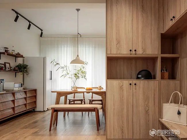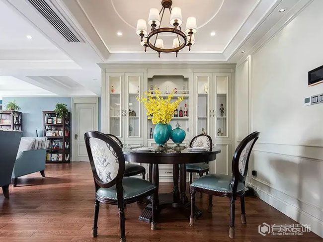 关于餐厅不能胡乱跟风的设计,复杂吊顶也是代表。毋庸置疑,在提升居家颜值方面,吊顶起到了至关重要的作用。尤其是高大上的复杂吊顶,效果更明显。只不过,复杂吊顶可不能随意跟风。如果餐厅层高低于2.6米,任性跟风去安装复杂吊顶,只会进一步拉低餐厅层高,餐厅也因此有了压抑感。很多时候,简单的石膏线吊顶或者平面吊顶,反而更适合餐厅空间。值得一提的是,定制餐边柜的柜门,也不建议跟风浮雕门。凹凸造型的浮雕门,容易成为家里的卫生死角。打理起来比较麻烦。再者,浮雕门的价格也高。与之相比,平板门更为靠谱。